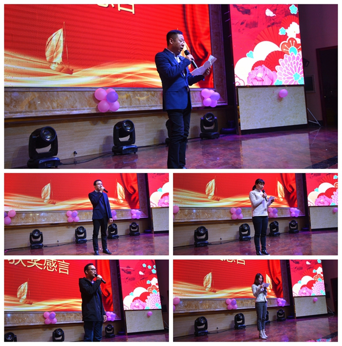 夢莎公司總經(jīng)理、安安美容保健品有限公司副總經(jīng)理陳紹昌受集團公司董事長陳智剛的委托致新年賀詞,感謝大家在過去一年中的付出,寄語新年,展望美好的明天。公司管理層成員共同登臺祝酒,迎新春嘉年盛宴正式拉開帷幕。